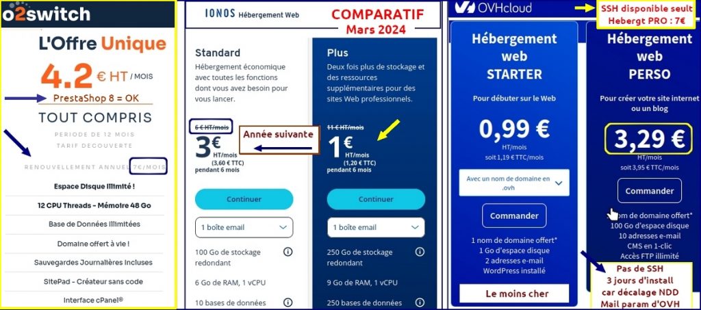 Exemple des meilleures offres d’hébergement pour votre site internet :